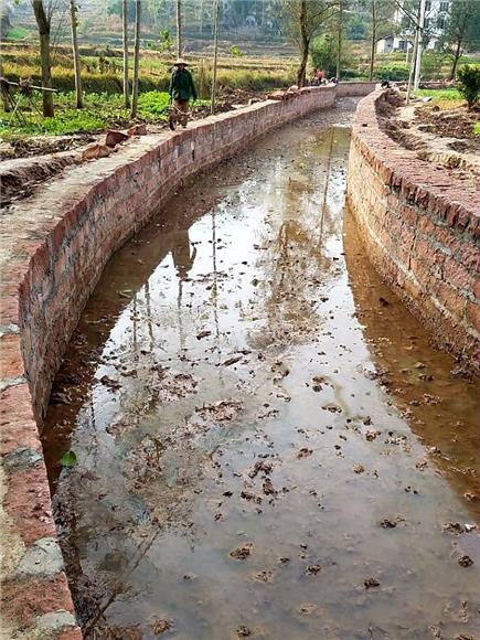 2017年12月初,河道整治工程正式开工,施工队人员克服施工条件艰苦和天气寒冷等困难,早出晚归,清淤、运料、砌筑、植树,仅一个月时间,就完成了对这一河段的整治,用崭新的河道景观迎接新年。