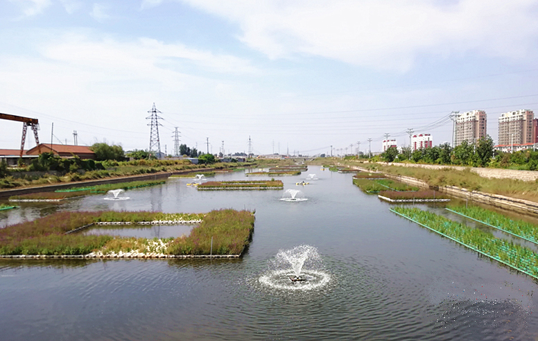 记者在东营区黄河路街道办事处附近的五干排看到,河道中的喷泉、水生植物等构成了景观怡人的人工生态浮岛。除此处外,东营区还在老广蒲沟、六干排等重点河道中建设人工生态浮岛。浮岛可利用水生生物在自然水环境中的吸收、消化、分解等功能使环境水质得以持续净化,达到修复和重建水生生态系统的目的